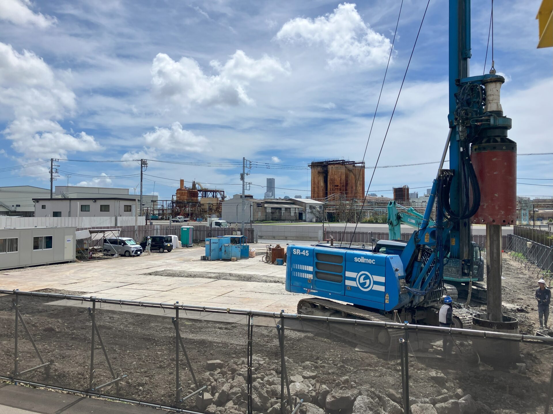 2025/7/11 杭を打つために、地中障害を打ち抜いています